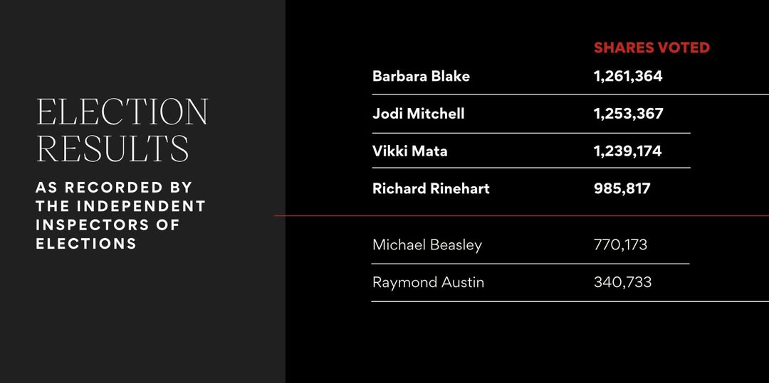 After considering the recently announced U.S. Postal Service delays to First-Class Mail in conjunction with a paper proxy error leading shareholders who wish to vote by mail to potentially wait for their regularly scheduled second proxy mailing, we have made the decision to extend the early bird deadline to June 6. We are listening to shareholders and want to give everyone the best chance to qualify as an early bird. Thank you for understanding and thank you for voting.